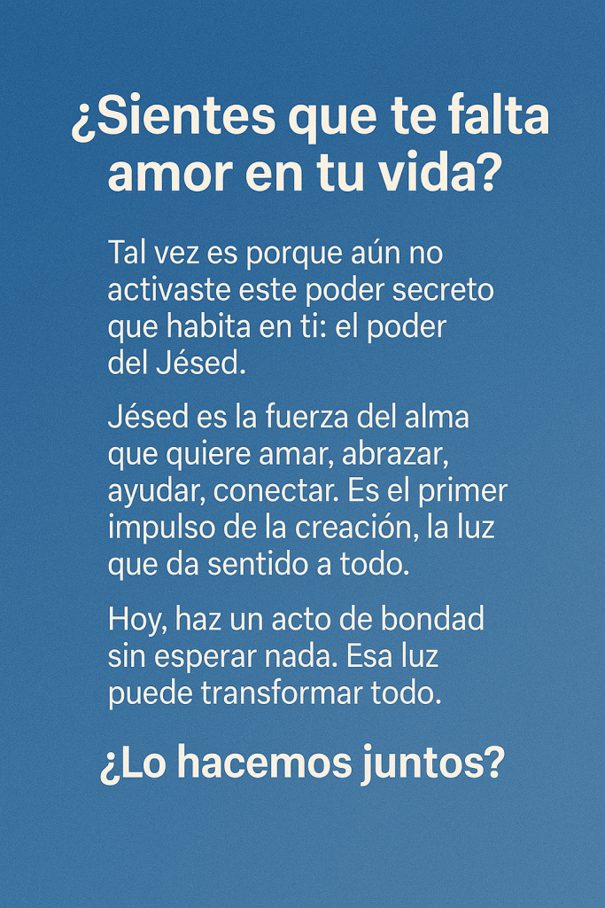 Sí, sí, no es exageración espiritualista ni frase motivacional vacía. Te estoy hablando de Jésed, una de las fuerzas más profundas, antiguas y poderosas que existen. Jésed no es solo “ser buena onda” o “hacer favores”… Es algo mucho más bestial: es la capacidad divina que tienes para amar sin medida, abrazar al mundo entero con tu existencia, y conectar con lo mejor de ti y de los demás.