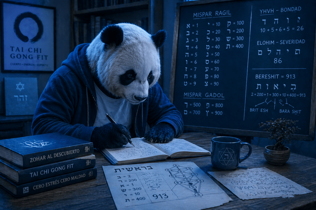 Por ejemplo, si tomamos el nombre de Dios que representa la Bondad, YHVH (Iod-He-Vav-He), su cálculo en Mispar Ragil es: 10 + 5 + 6 + 5 = 26. Este número no es solo una cifra; es la frecuencia de la luz infinita que fluye para sostener nuestra existencia. En Cero Estrés Cero Maldad, buscamos sintonizarnos con esa frecuencia de «Bondad» para disolver las tensiones del ego.